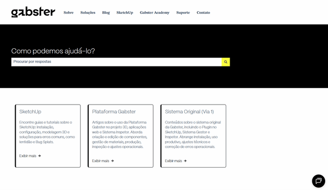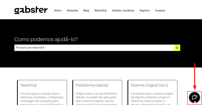 Escolha um dos tópicos (ex: SketchUp, Plataforma Gabster, Sistema Original) ou clique em “Falar com atendente”.