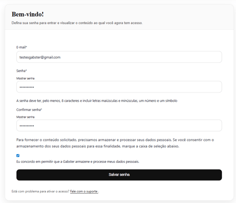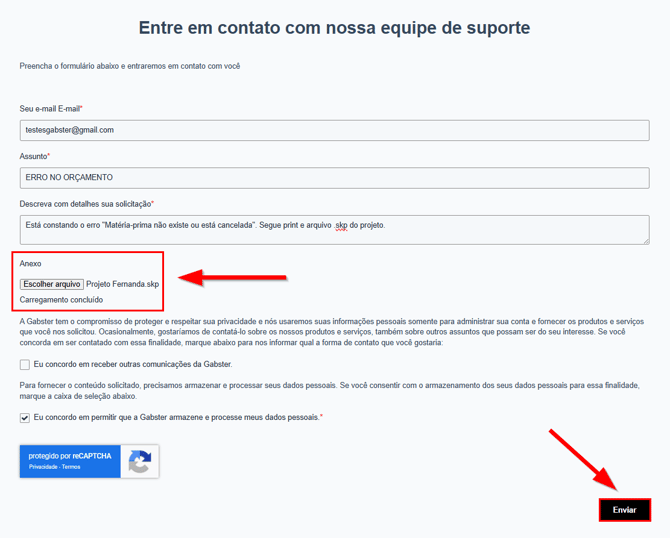 Envie um e-mail para suporte@gabster.com.br contendo: