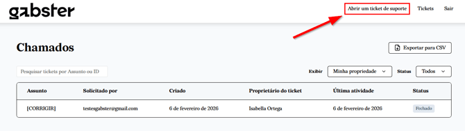 Além de registrar o chamado, você poderá acompanhar todos os tickets anteriores, com histórico de mensagens, anexos e status de cada atendimento.