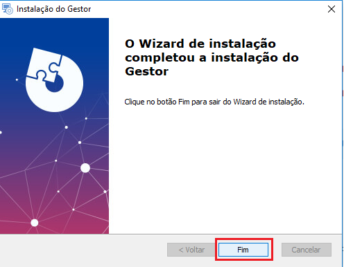 14. Clique em "Fim" e pronto! A instalação está concluída. Agora falta realizar o licenciamento do Gestor. Confira nos próximos passos.