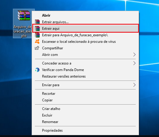 20. Com o arquivo em sua área de trabalho, basta clicar com o botão direito do mouse e em seguida clicar em “Extrair aqui” para que os arquivos sejam extraídos da pasta zipada.