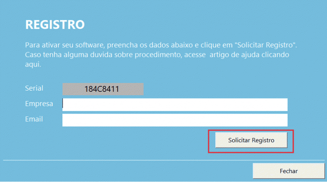 Obs: Caso envie a solicitação de registro sem preencher os campos, nosso suporte não saberá quem enviou a solicitação e não terá como validar sua licença.