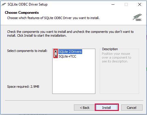 8. Marque as duas opções, "SQLite 2 Drivers" e "SQLite+TCC" e depois clique em "Install".