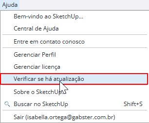 No menu superior do SketchUp, clique em Ajuda > Verificar se há atualização.
